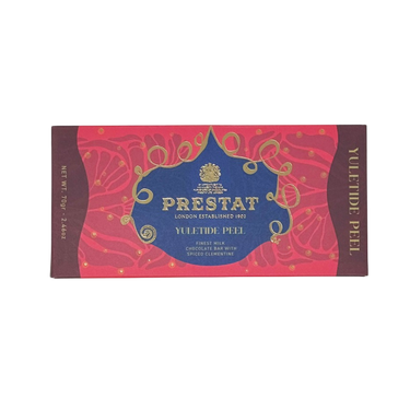 Allow us to introduce a taste of pure Christmas poetry. This elegant bar is a charming ode to the festive season, featuring the bright, nostalgic flavour of spiced clementine wrapped in our signature chocolate. It’s the essence of yuletide warmth, elegantly composed to bring a generous helping of joy. A classic, reimagined with a little Prestat flair.